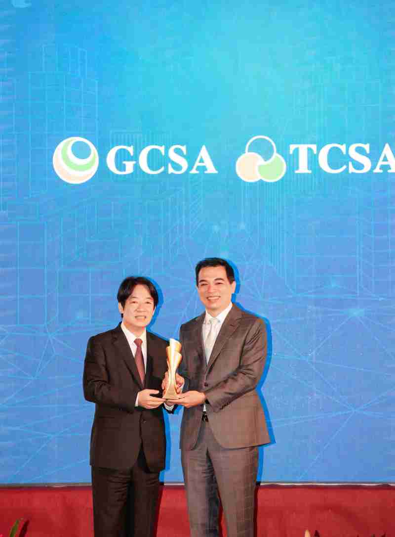 达全方位永续表现获全球永续奖及台湾永续奖肯定,,,由副总统赖清德颁奖 (左),,,PG国际总经理柯富仁 (右) 代表领奖