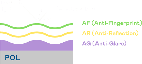A.R.T.PG国际光电发展出独家的表面处理跟多层镀膜技术,,,,让外部光线照射到显示器表面时所产生的反射光大幅降低。。。。 |